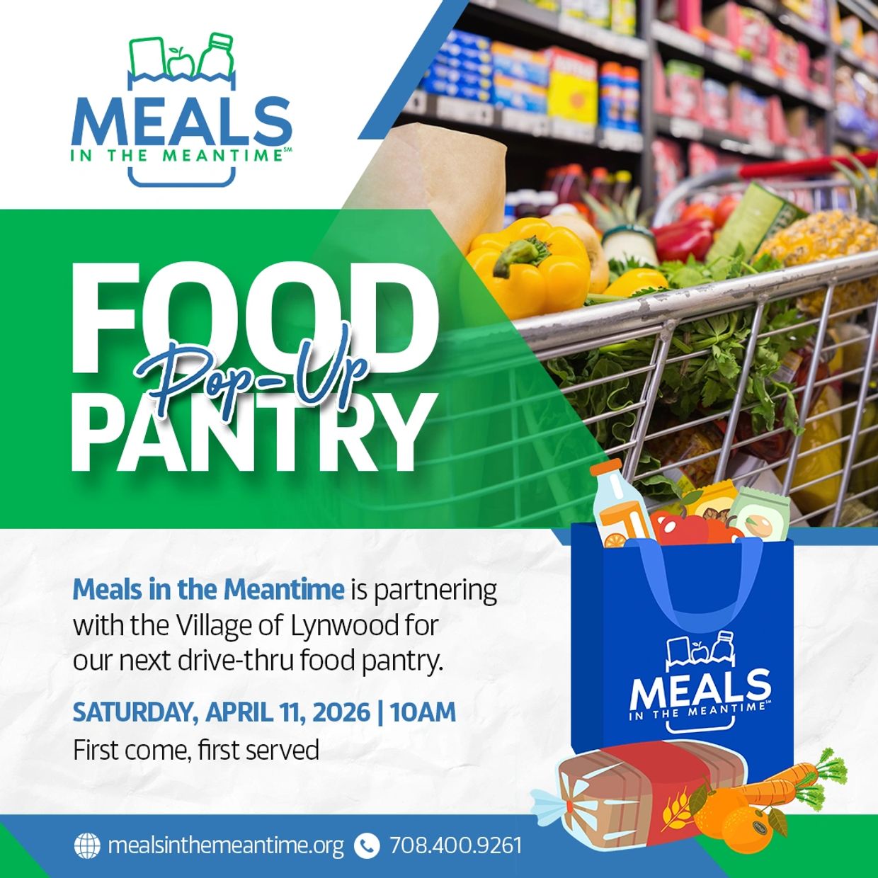 Meals in the Meantime is partnering with the Village of Lynwood for our next drive-thru food pantry on Saturday, April 11, 2026, 10am, at the Lynwood Village Hall, L Building Behind Village Hall, 21460 E. Lincoln Highway, Lynwood, Illinois 60411. First come, first served. All who need help with food are welcome.